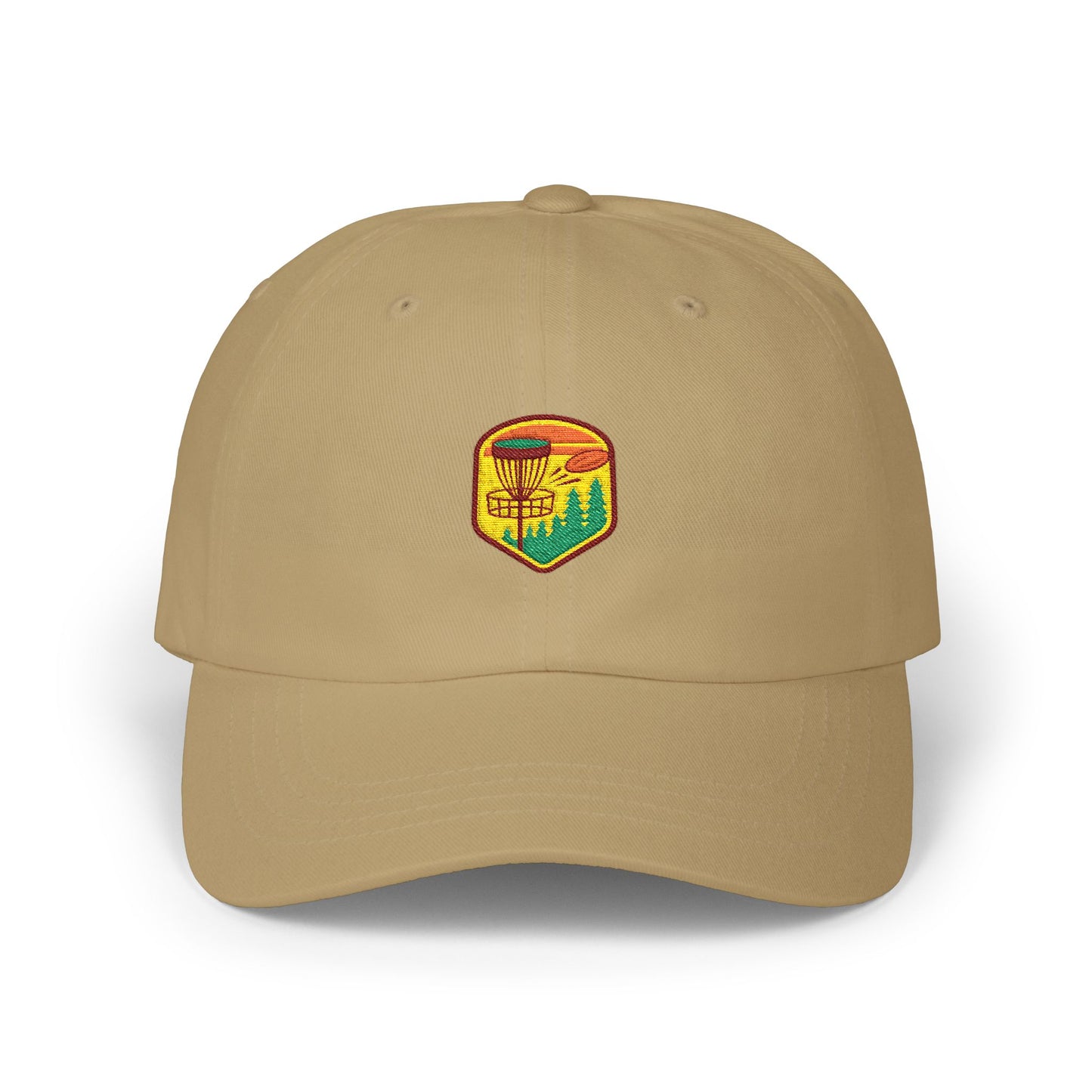 The Classic Dad Cap - Disc Golf Emblem combines comfort and durability with expert design. Its unstructured, low-profile fit ensures all-day comfort, while the six-panel construction provides lasting strength. Featuring a precurved visor and adjustable strap, this cap delivers a timeless look tailored to your fit. Perfect for outdoor enthusiasts and disc golf fans alike, it adds a relaxed yet refined touch to casual outings and active days. An excellent choice for gifting or everyday wear, this cap effortlessly elevates your style with practical ease.