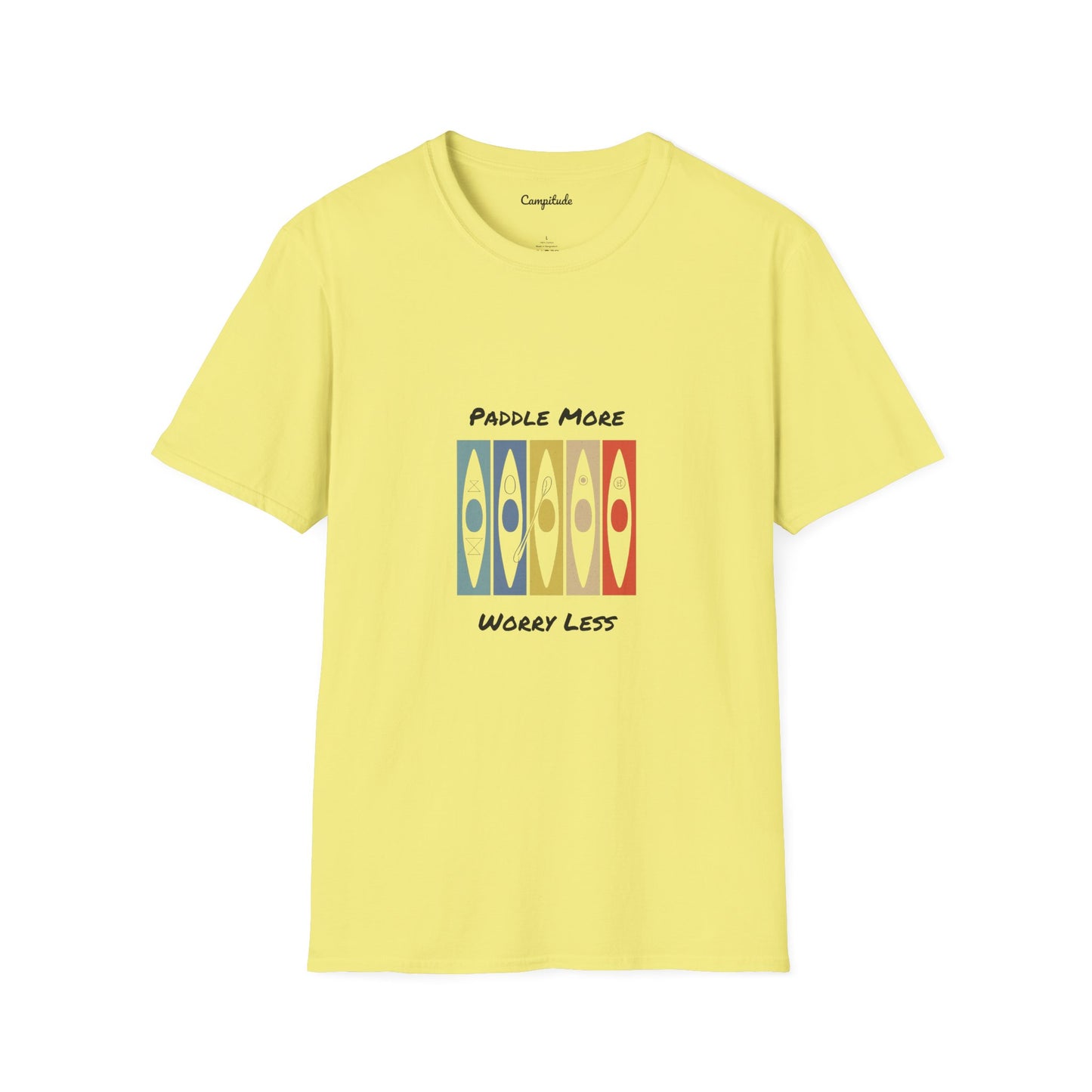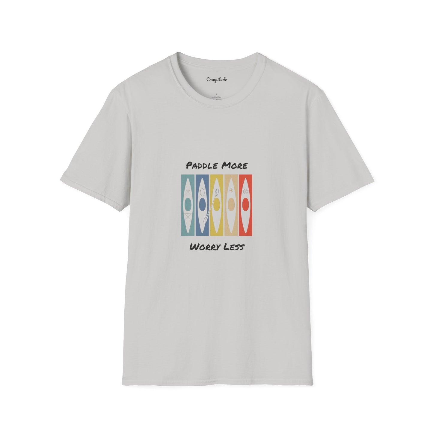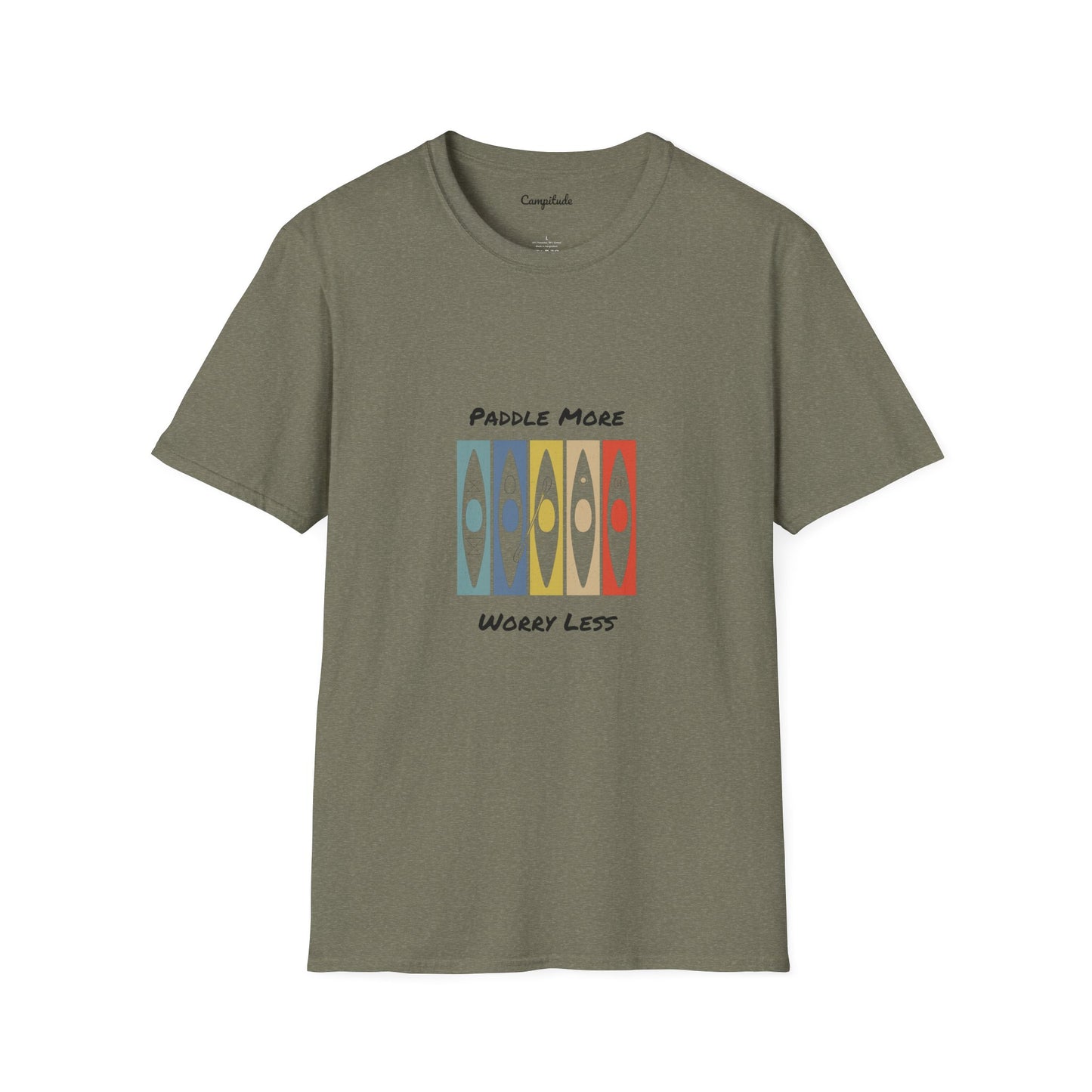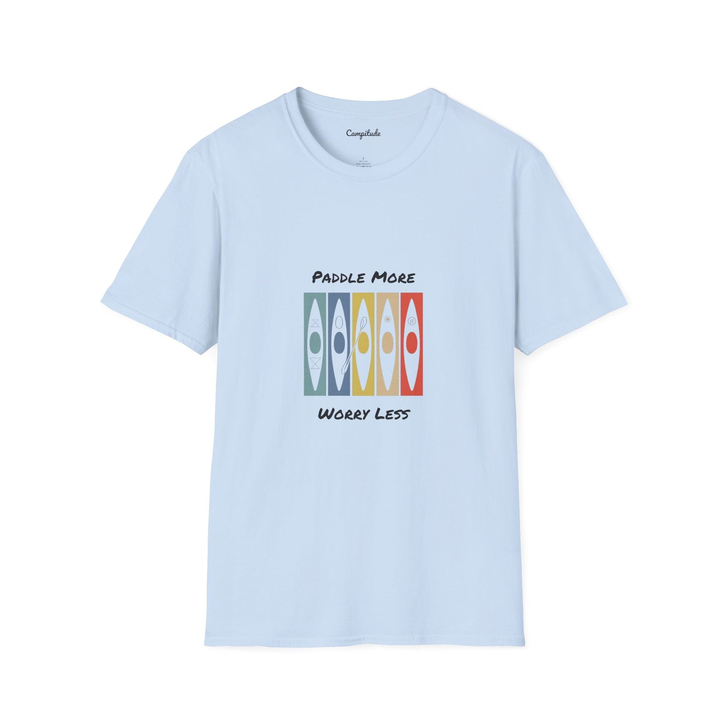 This unisex t-shirt, "Paddle More Worry Less," combines expert craftsmanship with casual comfort. Made from soft, lightweight fabric and constructed without side seams, it offers a smooth, flattering fit that lasts. Its cheerful design promotes a relaxed, outdoorsy mindset, perfect for water lovers and adventure seekers. Ideal for everyday wear, summer outings, or as a meaningful gift, this shirt encourages embracing life’s simple pleasures with ease and style.