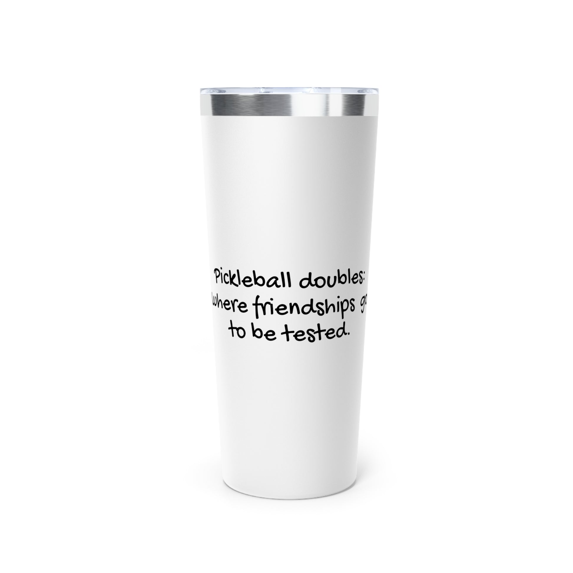 Elevate your hydration with the Stainless Steel Tumbler – Pickleball Doubles: Where Friendships Go To Be Tested. This 22oz copper vacuum insulated tumbler expertly maintains your beverages' temperature—hot for up to 6 hours and cold for up to 24 hours. Made from durable stainless steel, it resists rust and staining, ensuring long-lasting use. Its playful pickleball-themed design connects you to the spirit of the game, making it an ideal companion whether you're on the court, commuting, or relaxing at home. Stay refreshed with this functional and stylish tumbler built for pickleball enthusiasts.