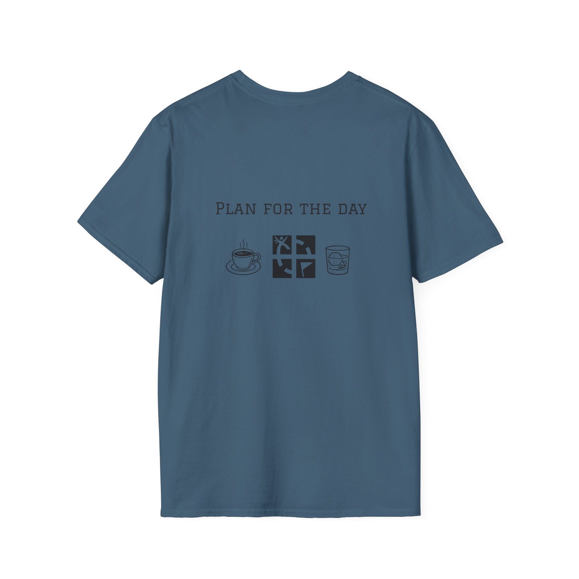 Unisex T-Shirt - Plan for the Day Geocache & Bourbon (2-sided graphic)