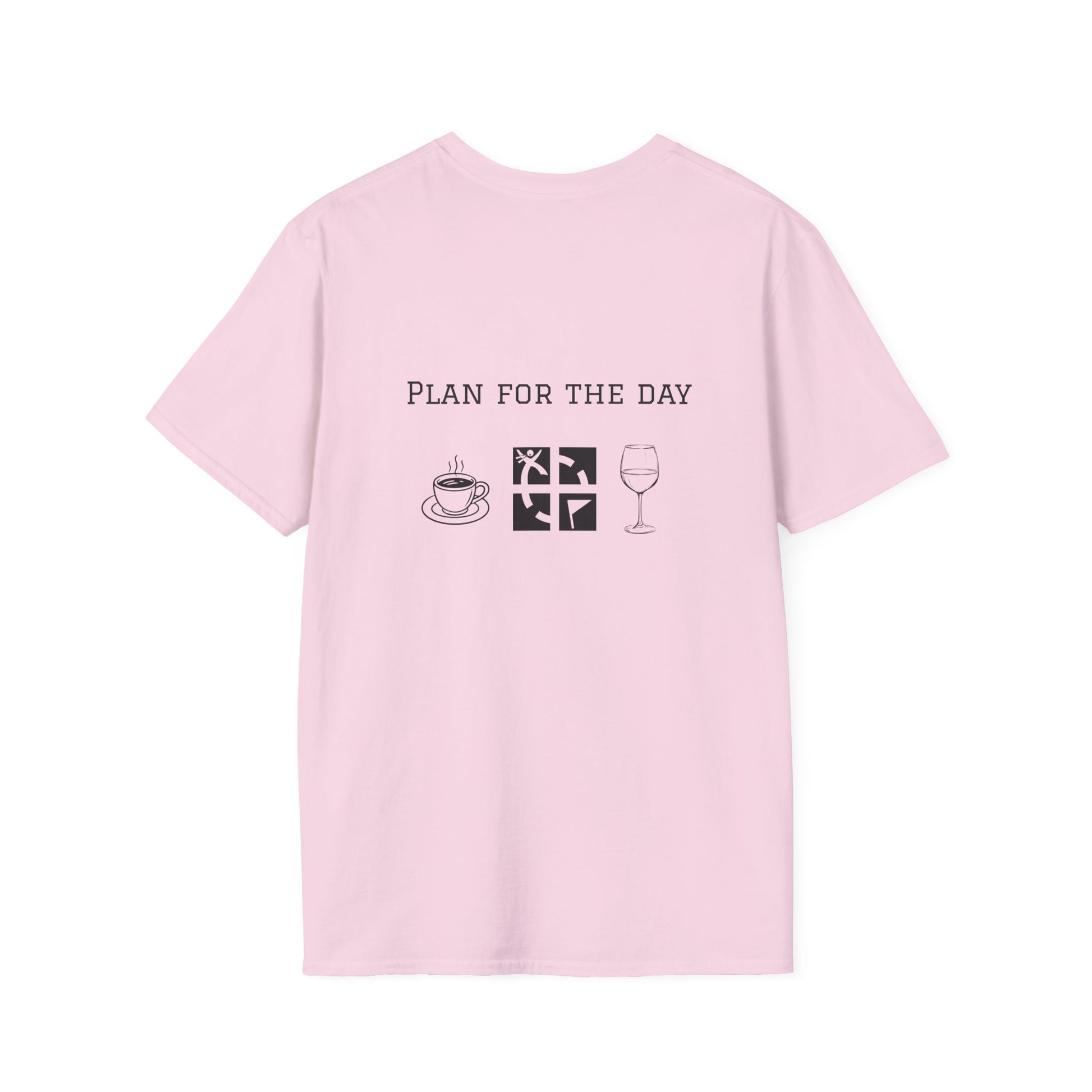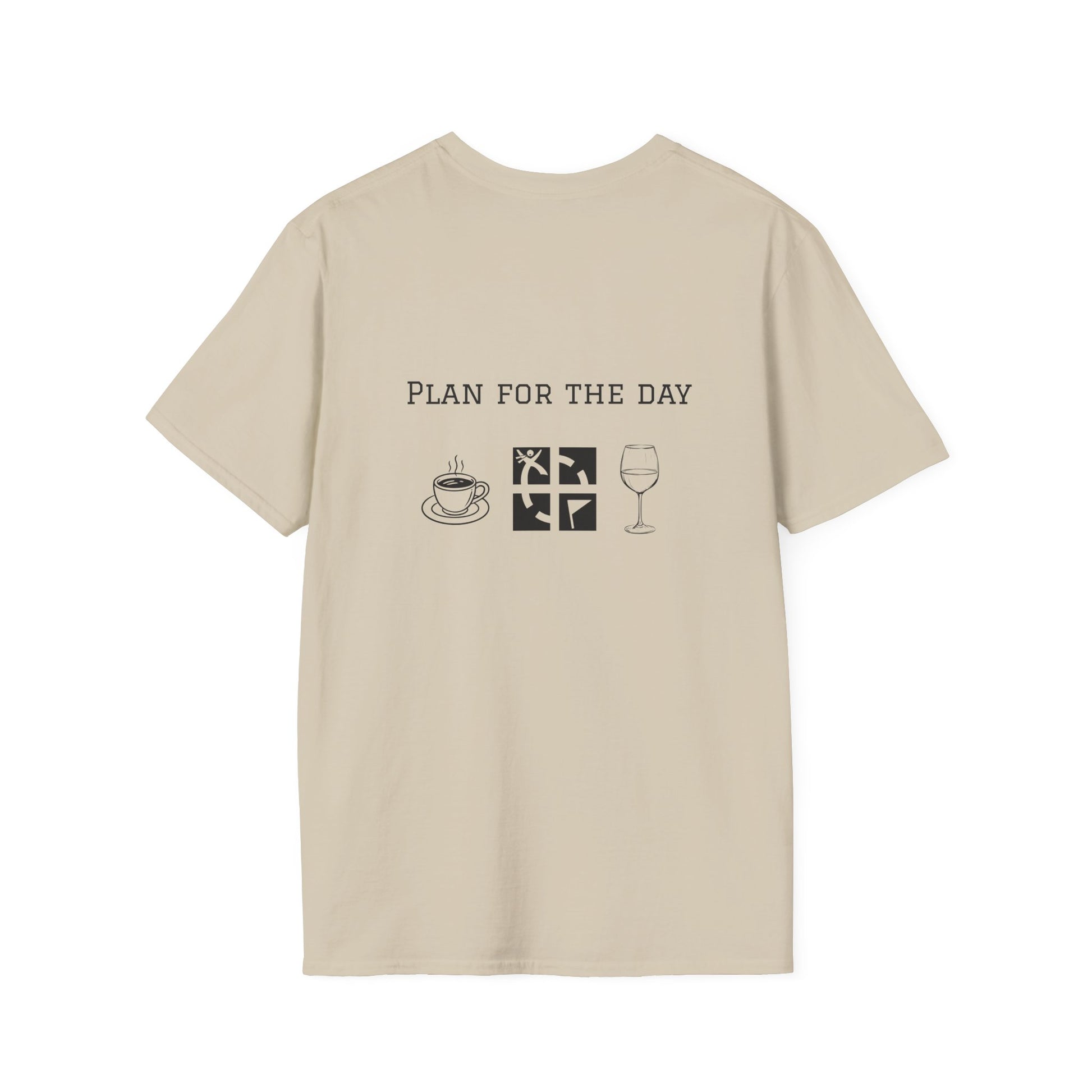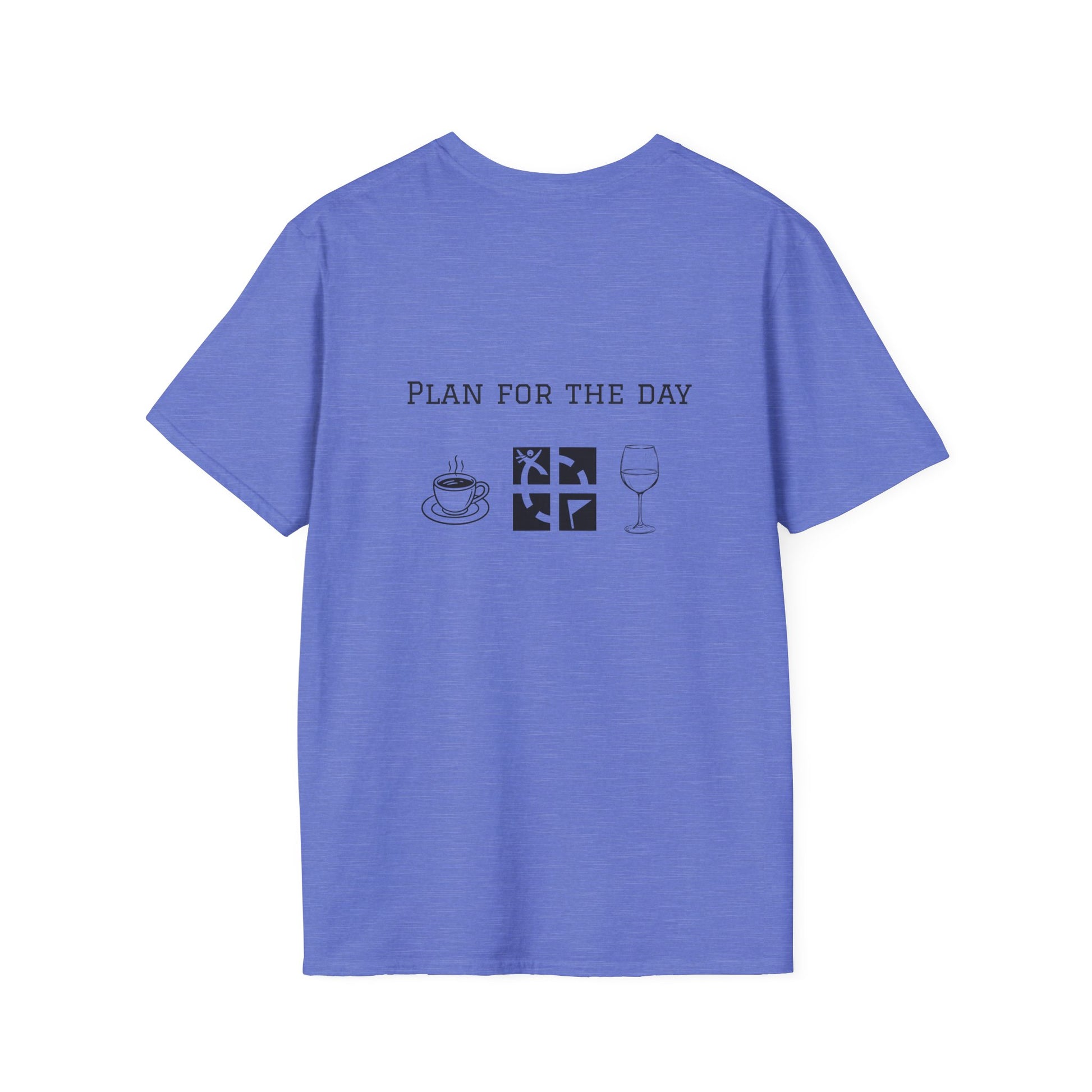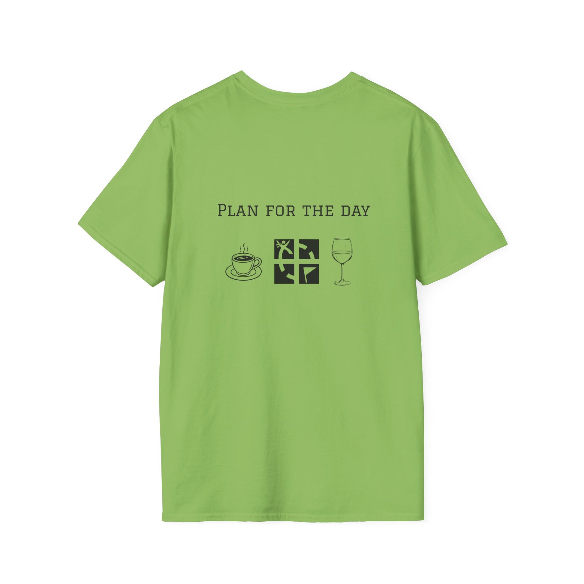 Elevate your everyday style with the Unisex Softstyle T-Shirt featuring a unique two-sided "Plan for the Day Geocache & Wine" graphic. Crafted without side seams for enhanced comfort and durability, this lightweight, smooth fabric t-shirt offers a flattering fit and breathability for all-day wear. Its classic crew neckline balances casual and polished looks, making it perfect for social outings, relaxed weekends, or cozy home days. Designed for adults who prioritize quality and sustainability, this versatile tee is an excellent choice to celebrate special moments or simply elevate your daily wardrobe.