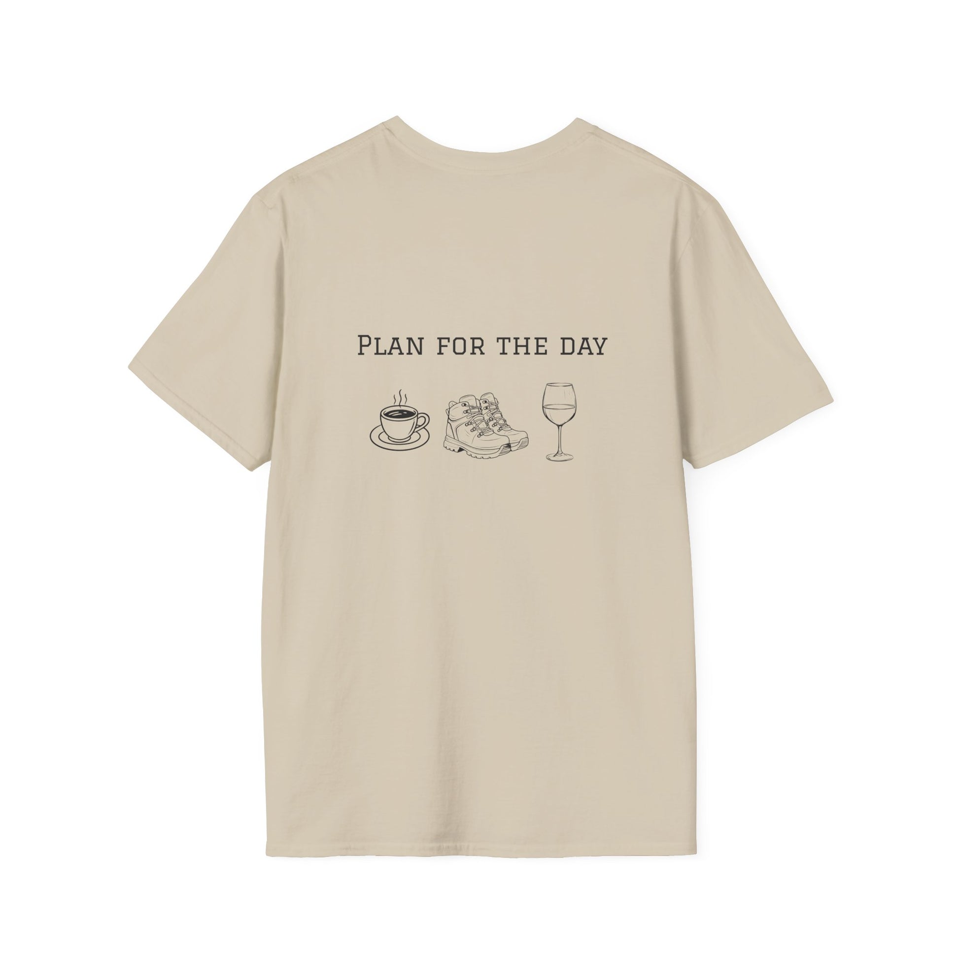 Unisex T-Shirt - Plan for the Day Hiking Boot & Wine (2-sided graphic)