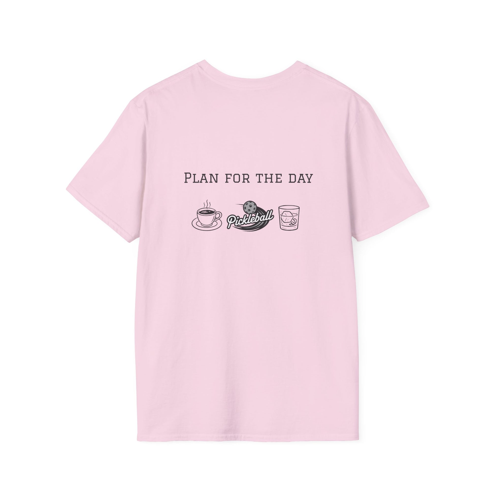 Unisex T-Shirt - Plan for the Day Pickleball & Bourbon (2-sided graphic)