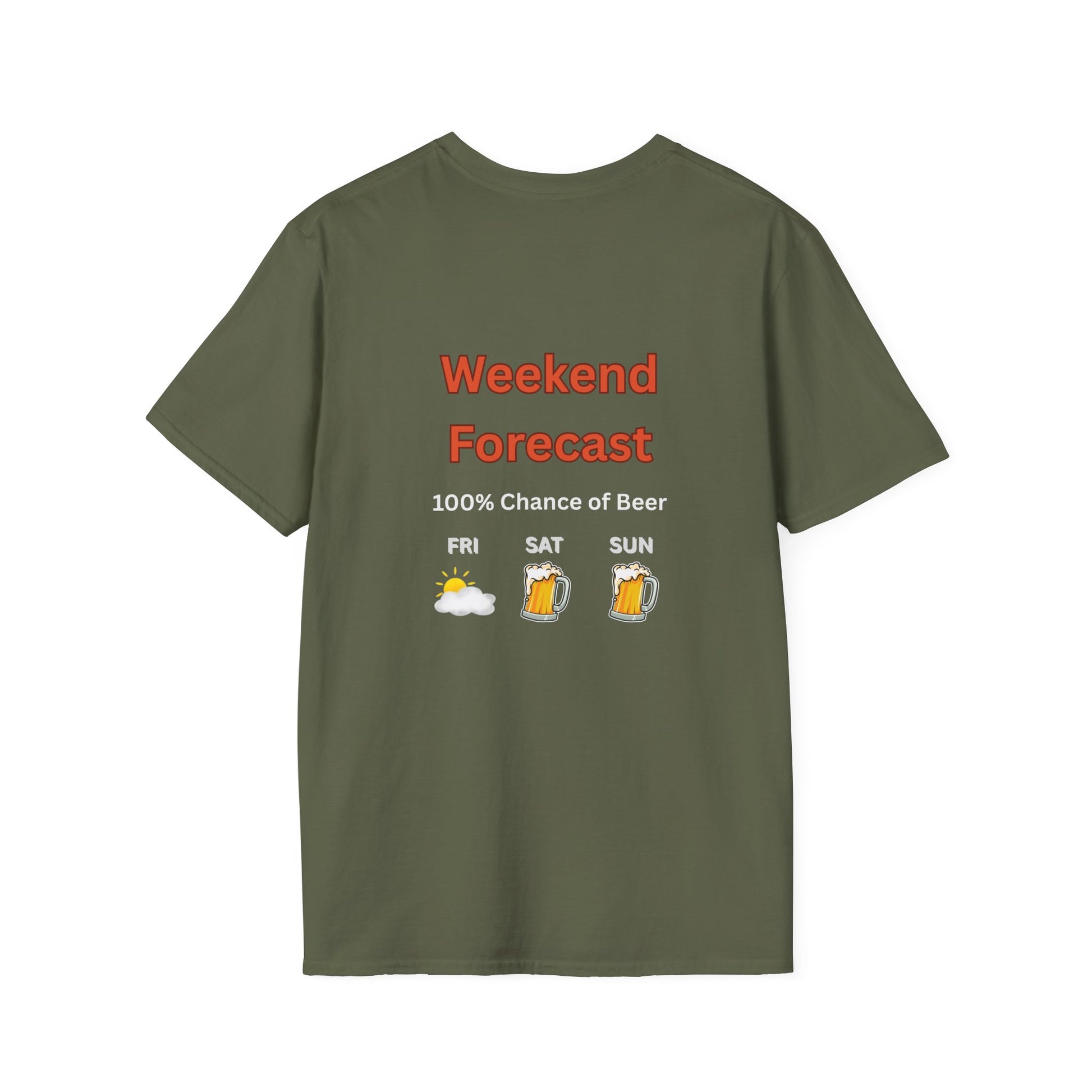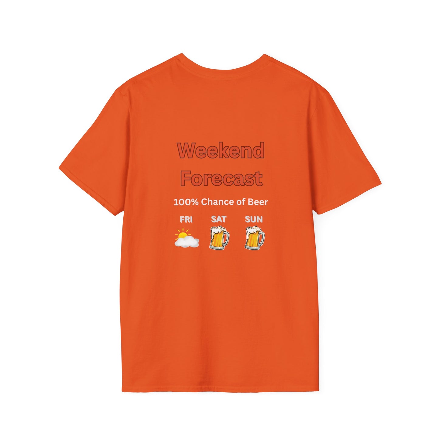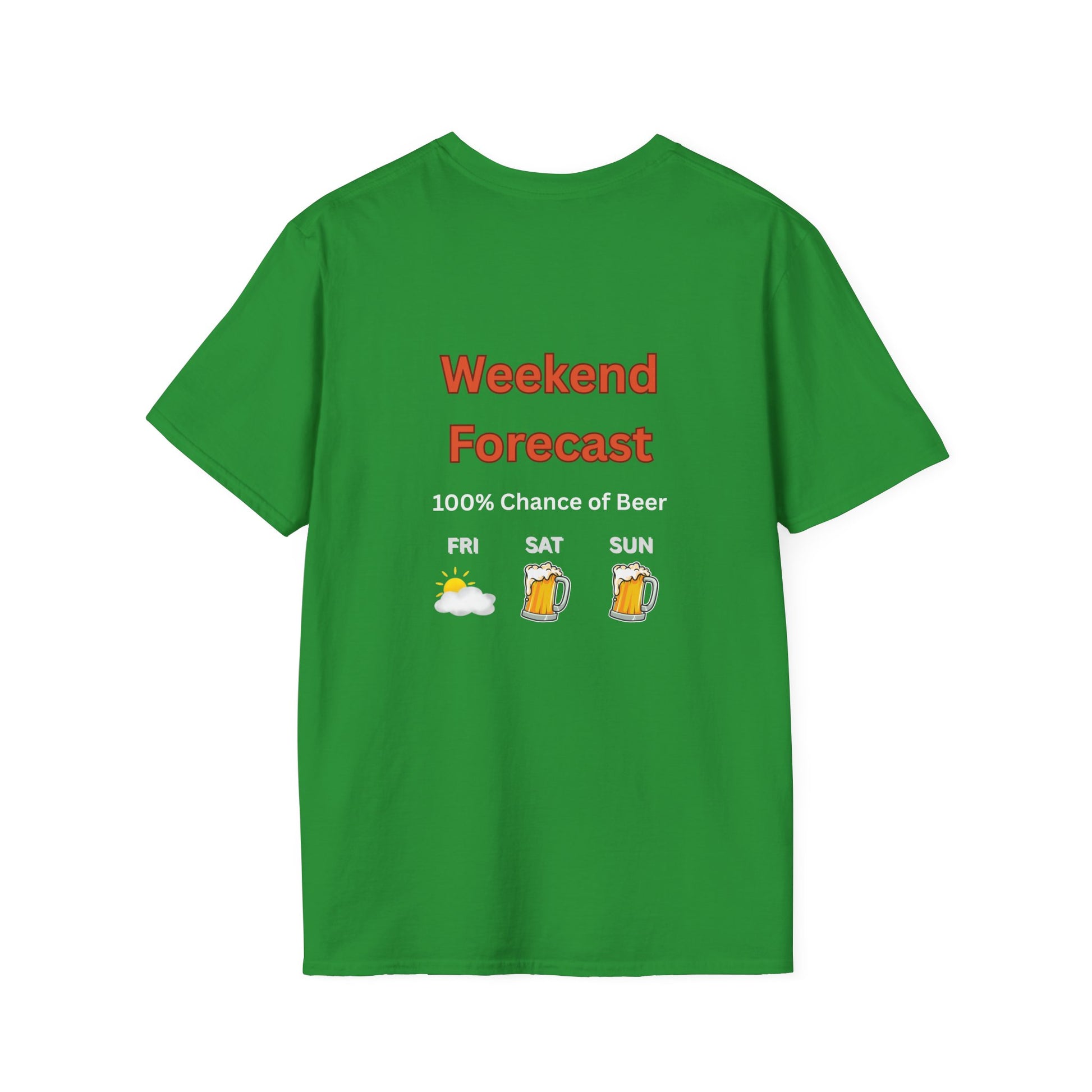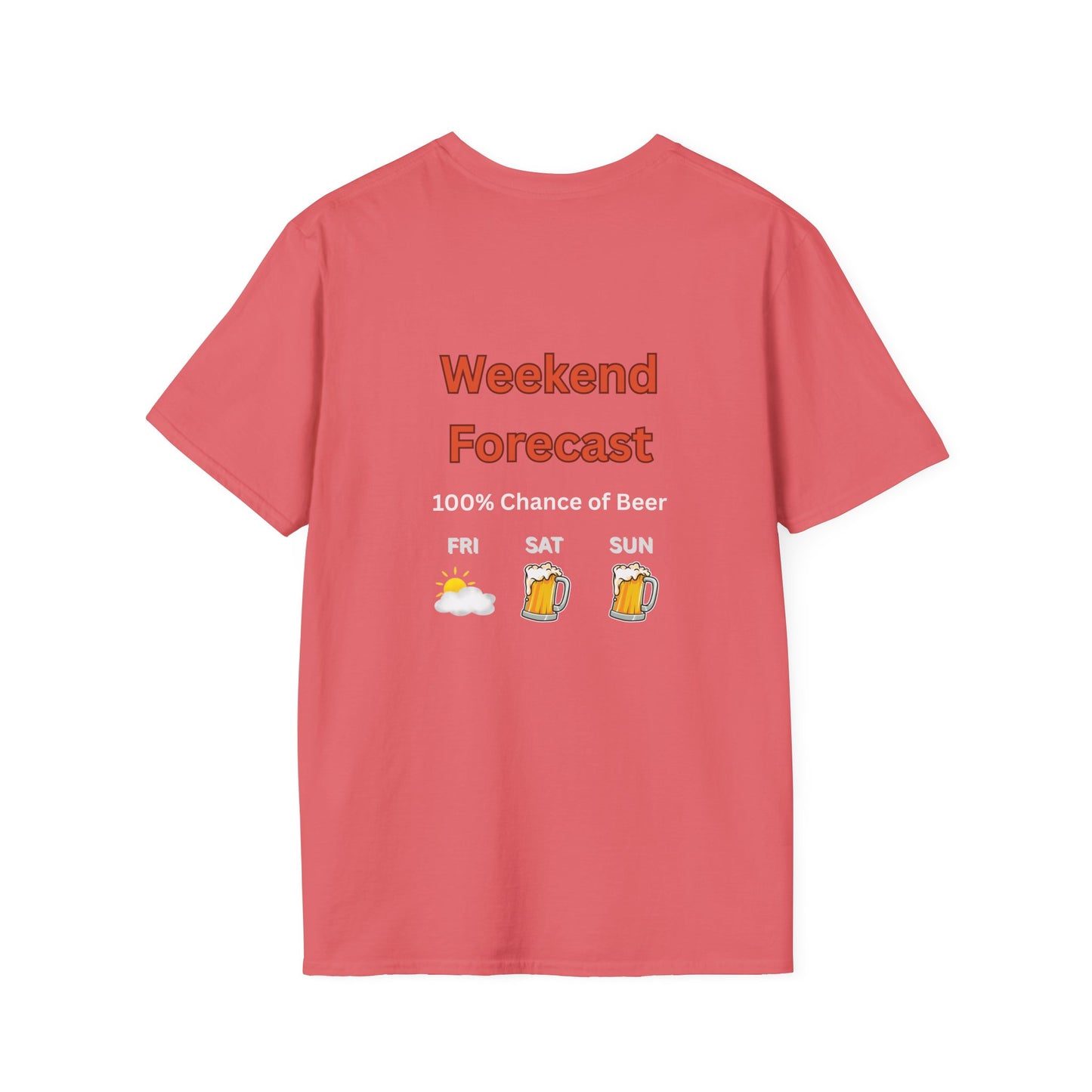 Unisex T-Shirt - Weekend Forecast 100% Beer (2-sided graphic)