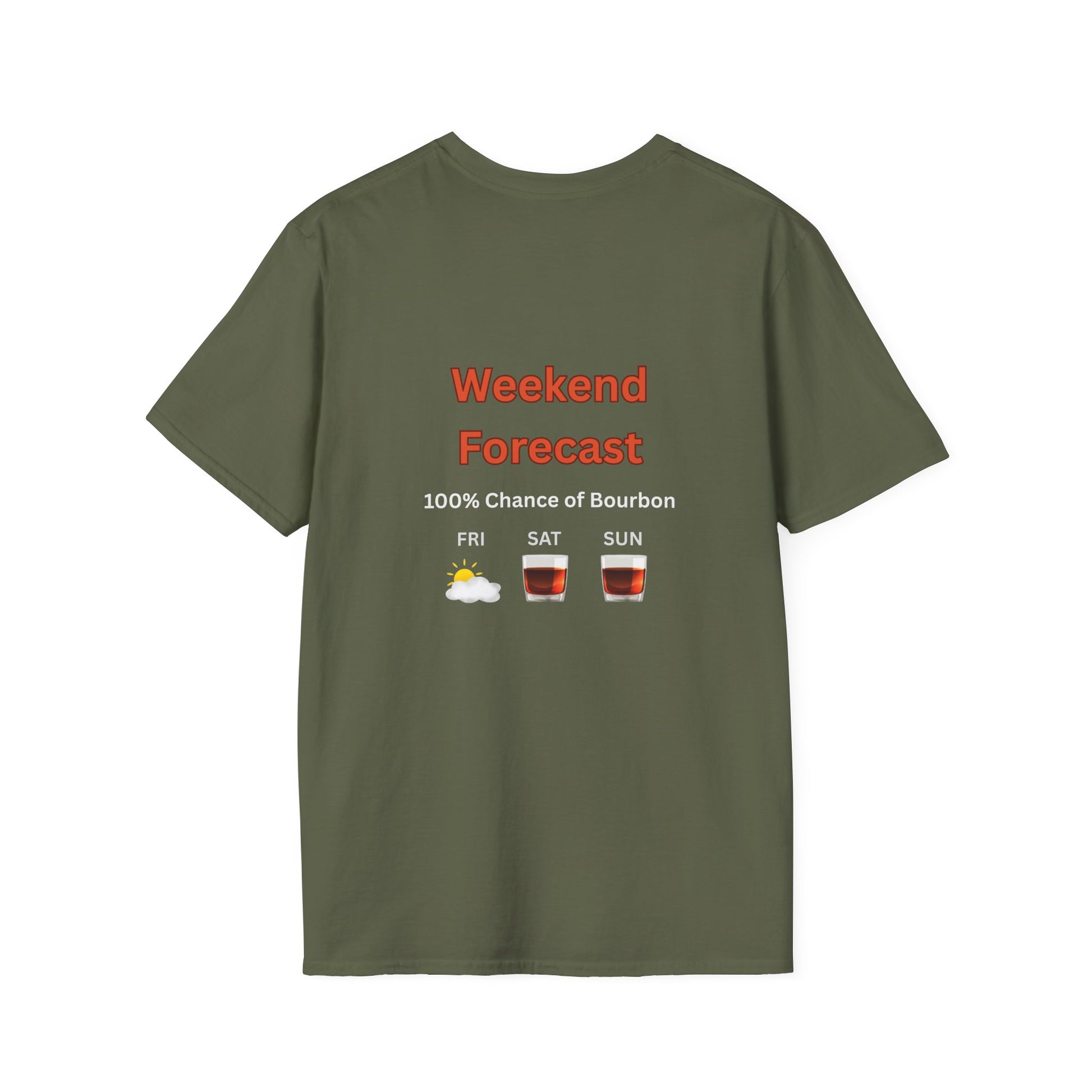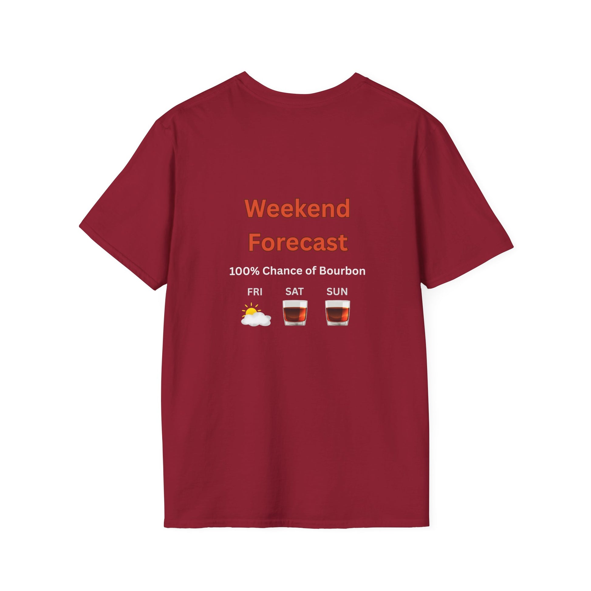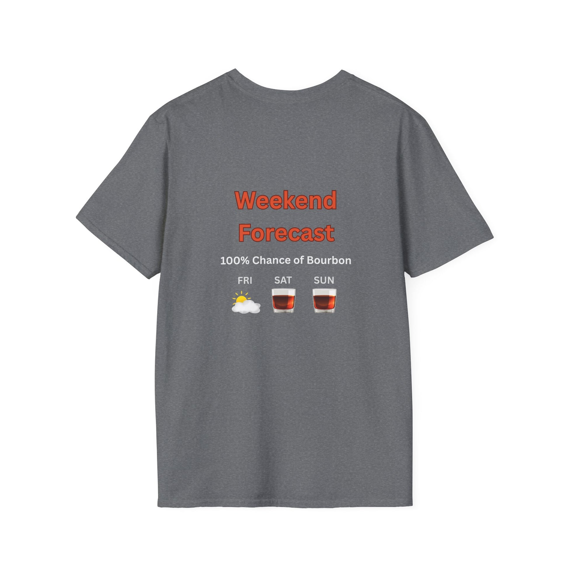 Unisex T-Shirt - Weekend Forecast 100% Bourbon (2-sided graphic)