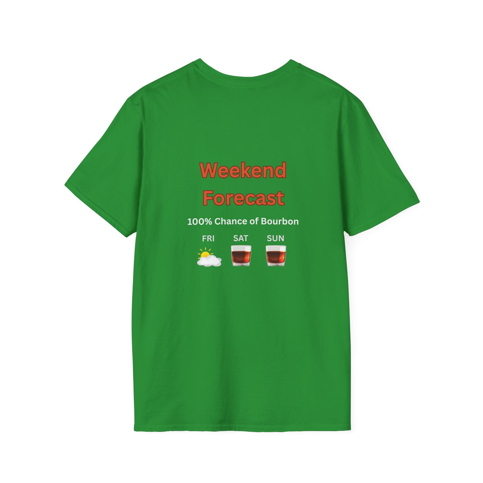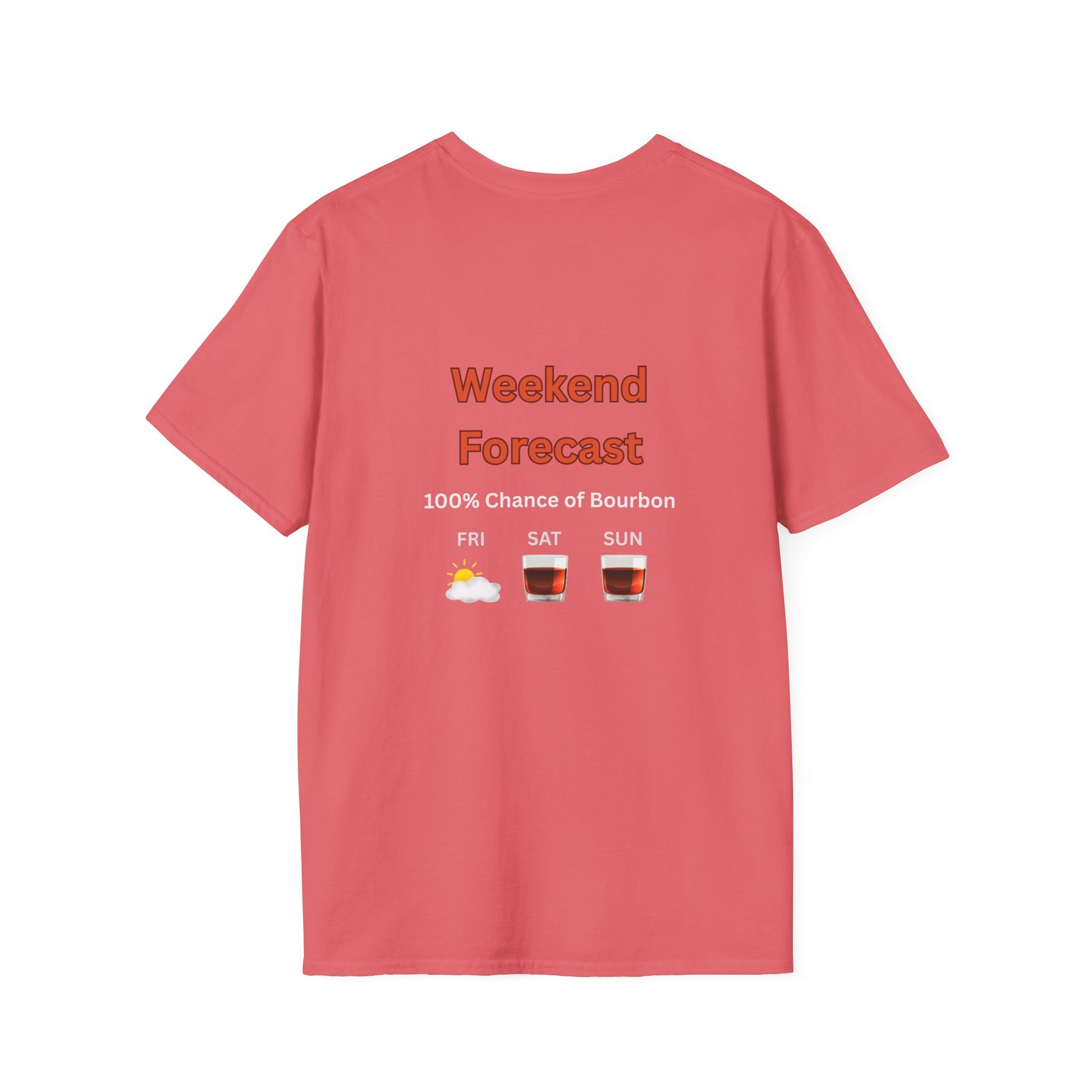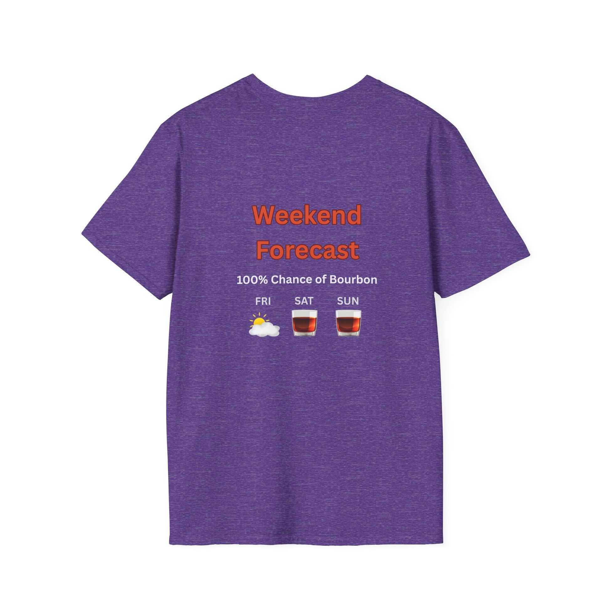 Unisex T-Shirt - Weekend Forecast 100% Bourbon (2-sided graphic)